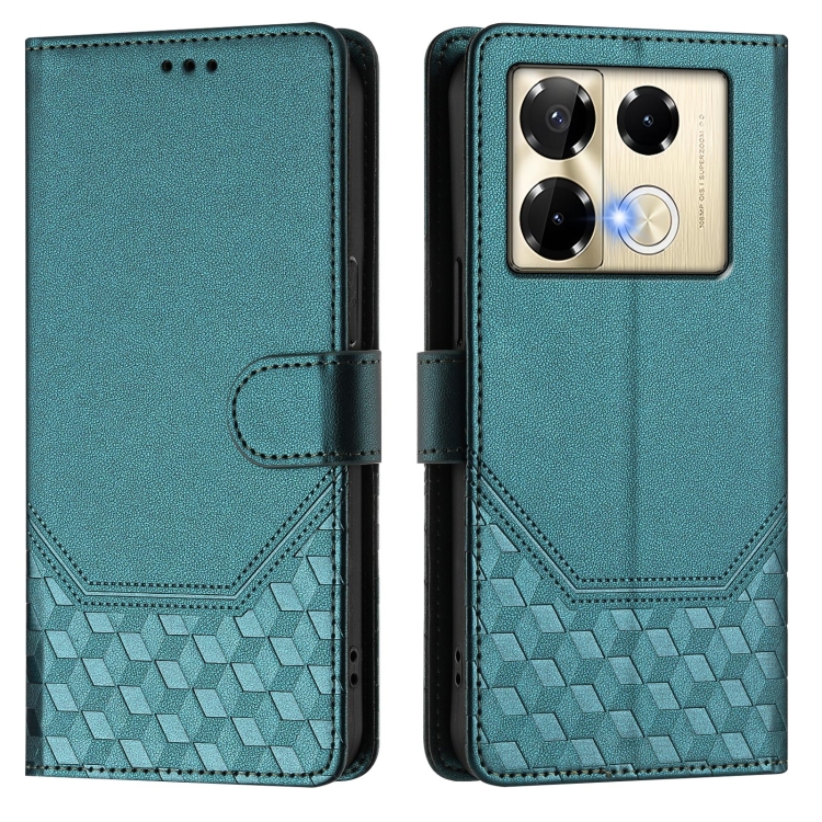 Funda de Cuero Rfid con Relieve en Panal para Infinix Note 40 Pro+ 5G (Verde Pavo Real)