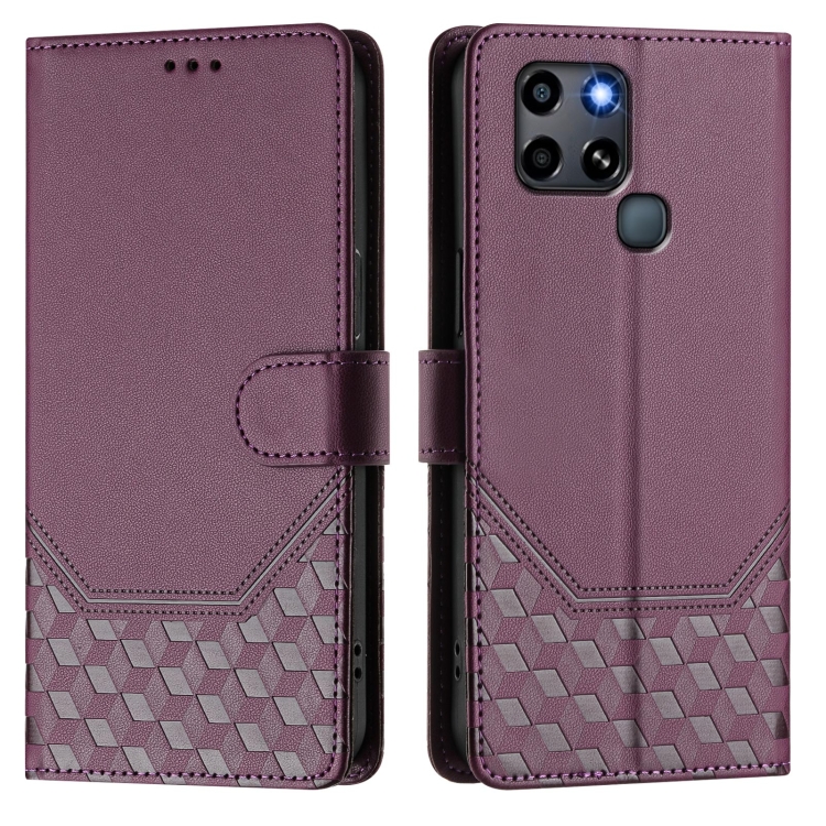 Funda de Cuero Rfid con Relieve en Panal para Infinix Smart 6/6 Plus/6 HD (Violeta)