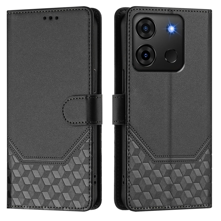 Funda de Cuero Rfid con Relieve en Panal para Infinix Smart 7 Plus/7 HD/7 India (Negra)