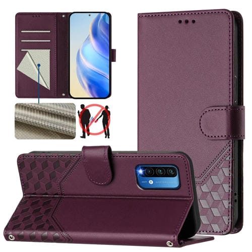 Funda de Cuero Rfid con Relieve En Panal para Redmi 9T Global (Violeta)