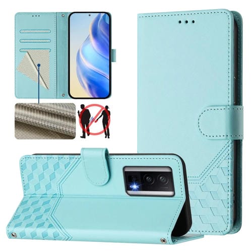 Funda de Cuero Rfid con Relieve En Panal para Redmi K60/K60 Pro (Verde Menta)