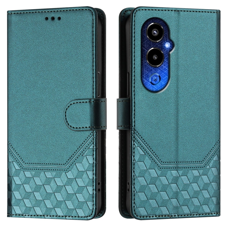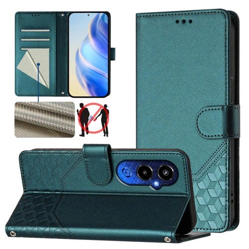 Funda de Cuero Rfid con Relieve en Panal para Tecno Pova 4 Pro 4G (Verde Pavo Real)