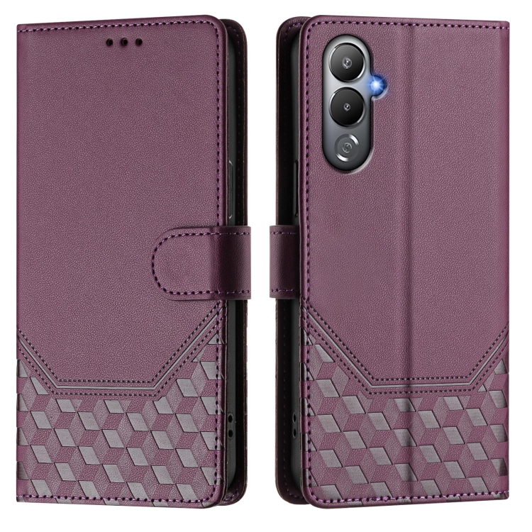 Funda de Cuero Rfid con Relieve en Panal para Tecno Pova 4 (Violeta)