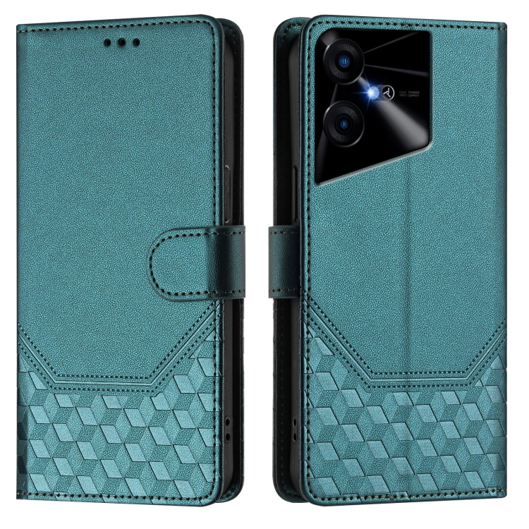 Funda de Cuero Rfid con Relieve en Panal para Tecno Pova Neo 3 (Verde Pavo Real)