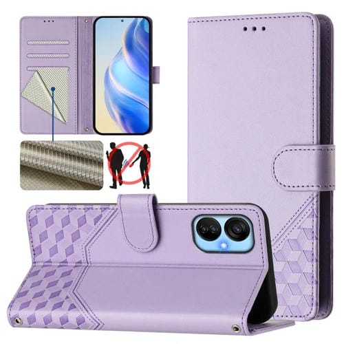 Funda de Cuero Rfid con Relieve en Panal para Tecno Spark 9 Pro y Spark 9T (Morado Claro)