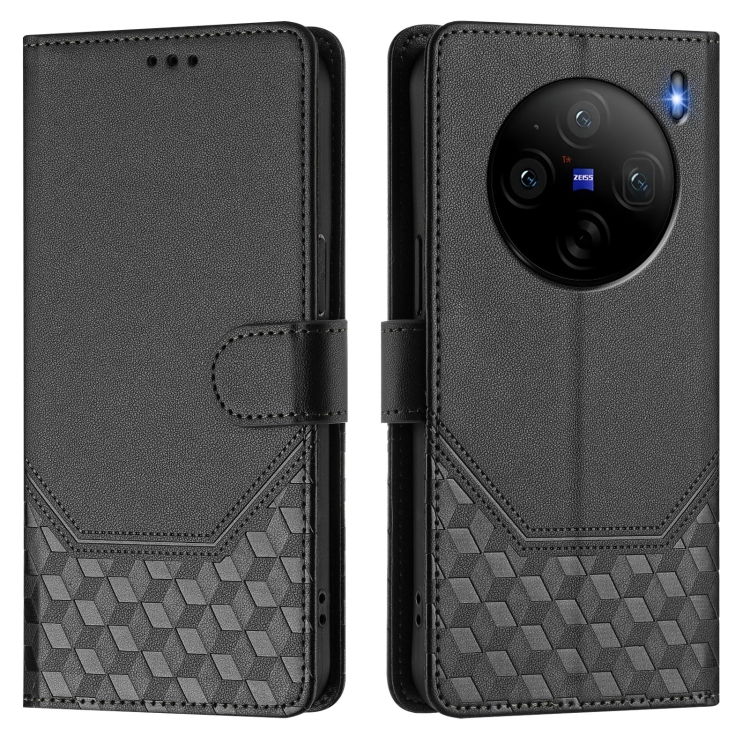 Funda de Cuero Rfid con Relieve En Panal para Vivo X100S 5G (Negra)