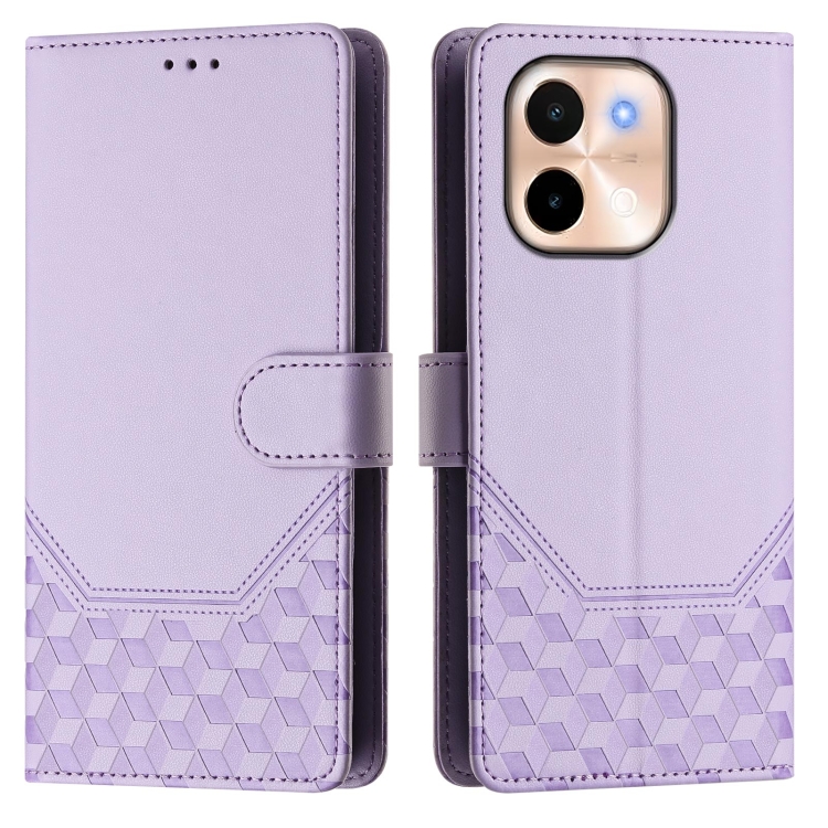 Funda de Cuero Rfid con Relieve En Panal para Vivo Y28 4G (Morado Claro)