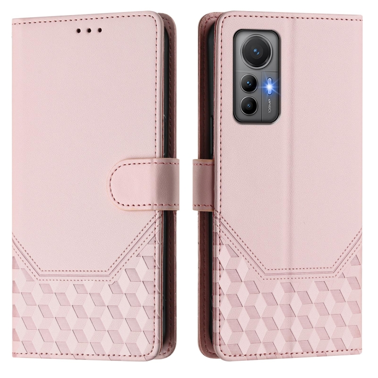 Funda de Cuero Rfid con Relieve En Panal para Xiaomi 12 Lite (Rosa)