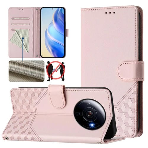 Funda de Cuero Rfid con Relieve En Panal para Xiaomi 12S Ultra (Rosa)