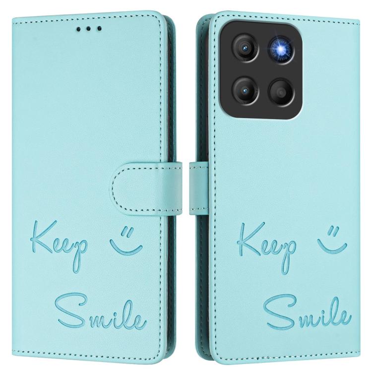 Funda de Cuero Rfid con Relieve Smile para Motorola Moto G15 (Verde Menta)
