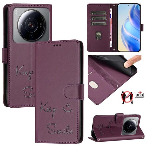 Funda de Cuero Rfid con Relieve Smile para Xiaomi 12S Ultra (Violeta)