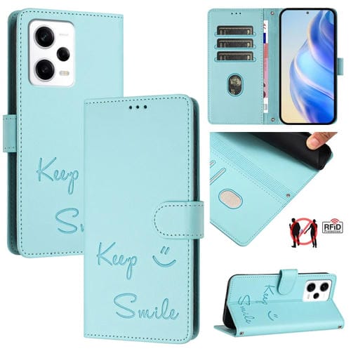 Funda de Cuero Rfid con Relieve Sonriente Explorer para Redmi Note 12 (Verde Menta)