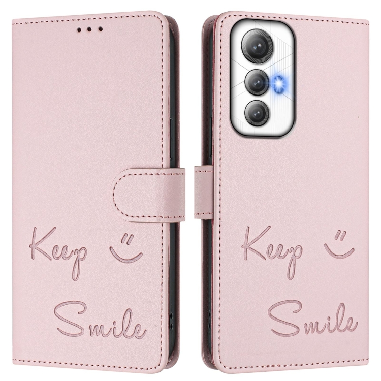 Funda de Cuero Rfid con Relieve Sonriente para Cubot Max 5 (Rosa)