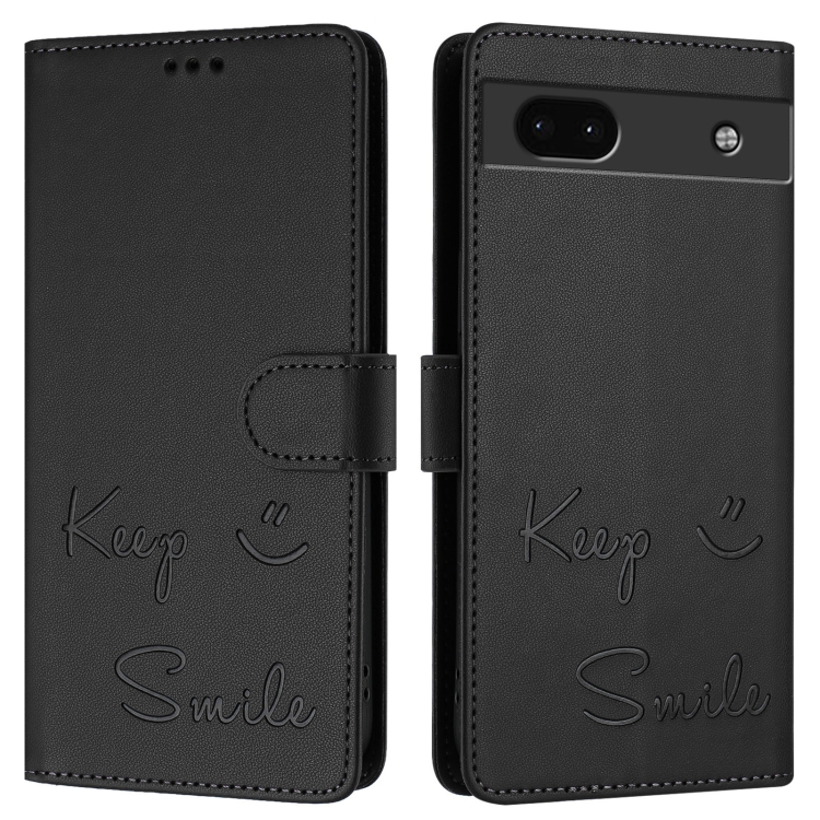 Funda de Cuero Rfid con Relieve Sonriente para Google Pixel 6A (Negra)