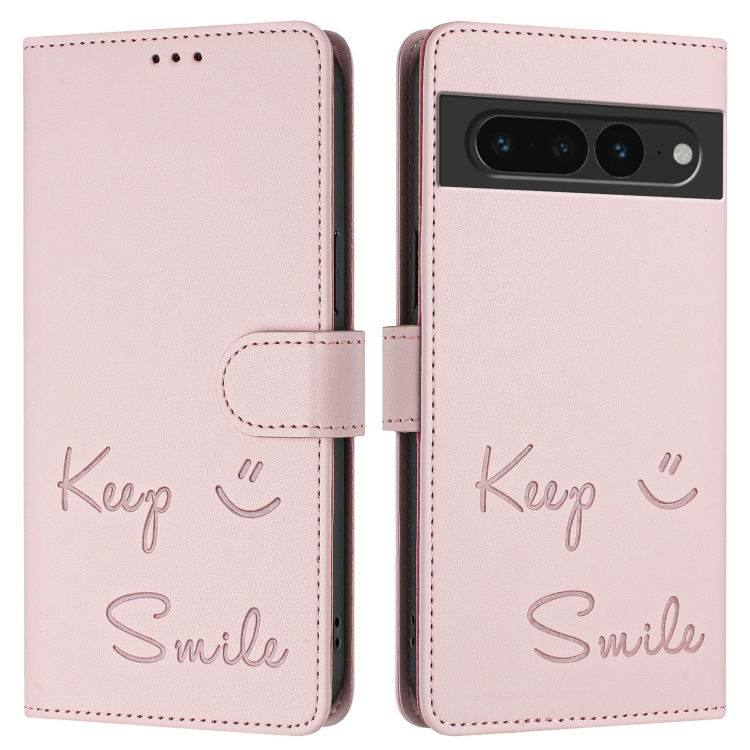 Funda de Cuero Rfid con Relieve Sonriente para Google Pixel 7 Pro (Rosa)