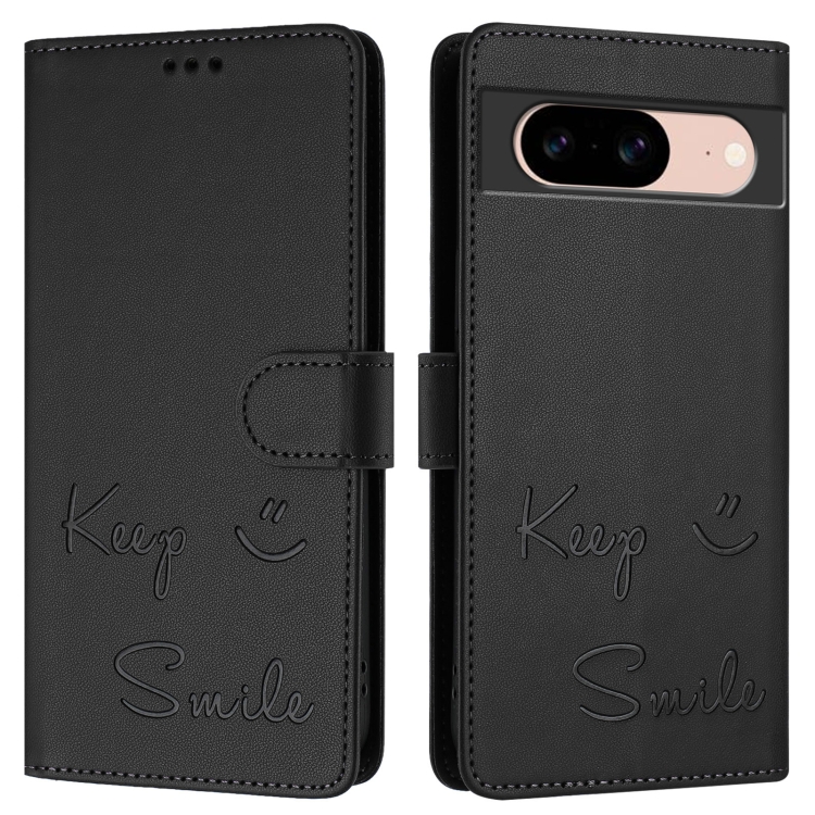 Funda de Cuero Rfid con Relieve Sonriente para Google Pixel 8A (Negra)