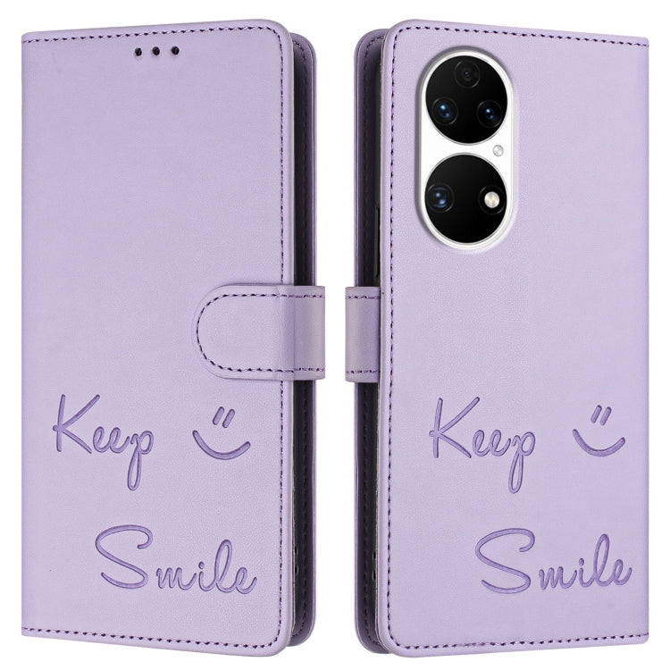 Funda de Cuero Rfid con Relieve Sonriente para Huawei Enjoy 50 Pro 4G (Morado Claro)
