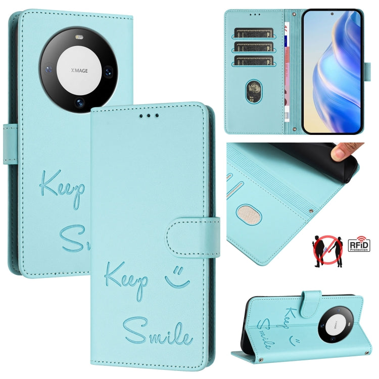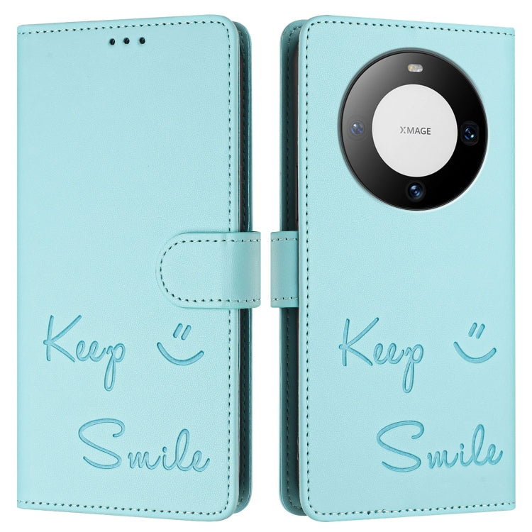 Funda de Cuero Rfid con Relieve Sonriente para Huawei Mate 60 Pro/60 Pro+ (Verde Menta)