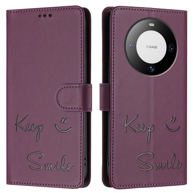 Funda de Cuero Rfid con Relieve Sonriente para Huawei Mate 60 (Violeta)