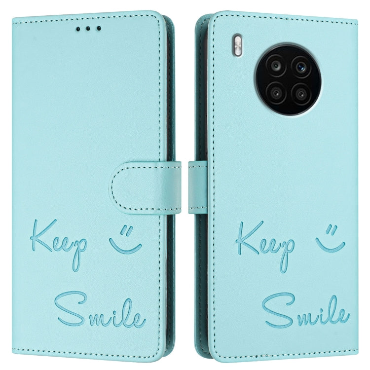 Funda de Cuero Rfid con Relieve Sonriente para Huawei Nova 8I (Verde Menta)