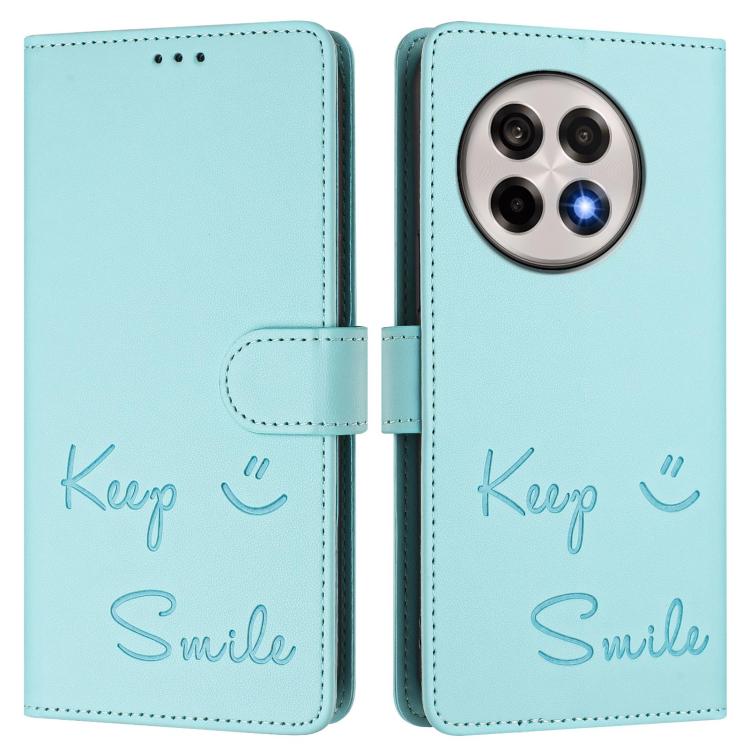 Funda de Cuero Rfid con Relieve Sonriente para OnePlus 13R/Ace 5 Pro 5G (Verde Menta)