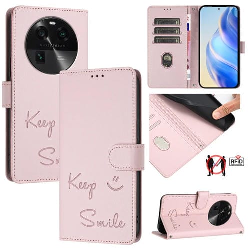 Funda de Cuero Rfid con Relieve Sonriente para Oppo Find X6 Pro (Rosa)