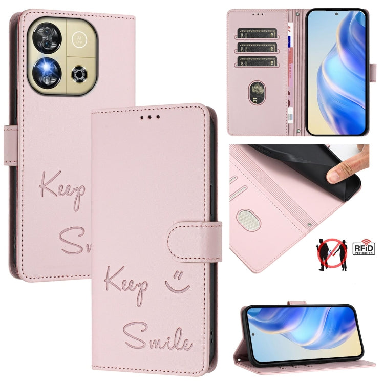 Funda de Cuero Rfid para Oukitel C57S con Relieve Sonriente (Rosa)