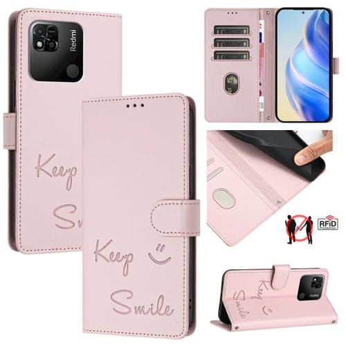 Funda de Cuero Rfid con Relieve Sonriente para Redmi 10A/9C (Rosa)