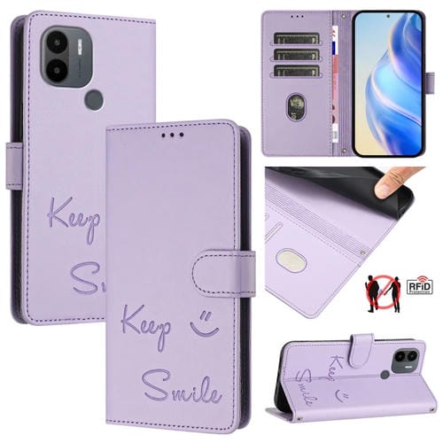 Funda de Cuero Rfid con Relieve Sonriente para Redmi A1+/A2+ (Morado Claro)