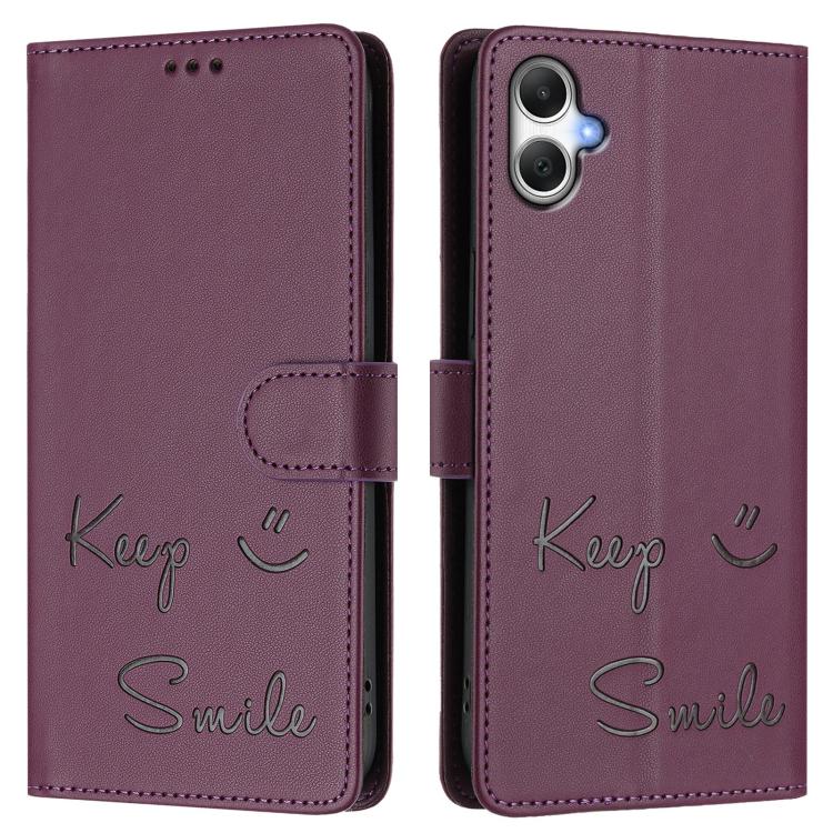 Funda de Cuero Rfid con Relieve Sonriente para Samsung Galaxy A06 5G/4G (Violeta)