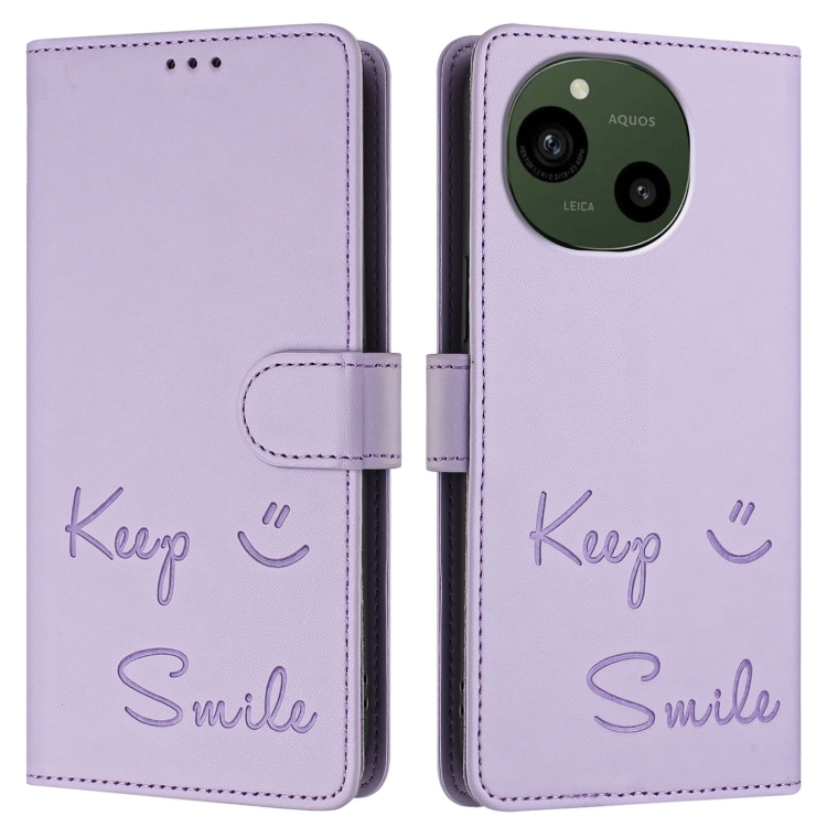 Funda de Cuero Rfid con Relieve Sonriente para Sharp Aquos R9 (Morado Claro)