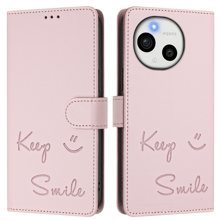 Funda de Cuero Rfid con Relieve Sonriente para Sharp Aquos Sense9 Plus (Rosa)