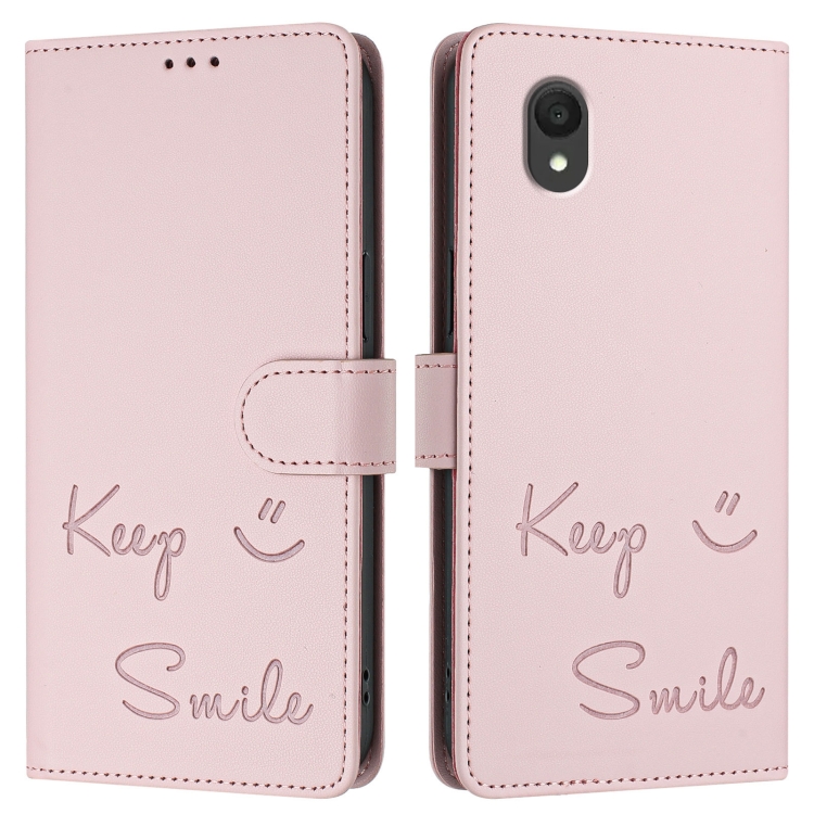 Funda Cuero Rfid con Relieve Sonriente para TCL 201 (Rosa)