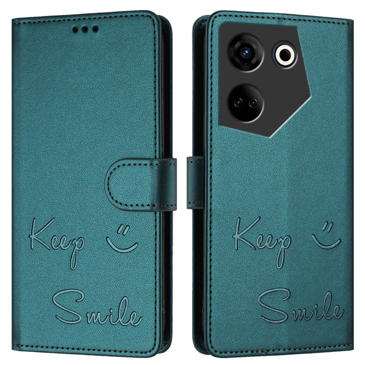 Funda de Cuero Rfid con Relieve Sonriente para Tecno Camon 20/20 Pro 4G (Verde Pavo Real)