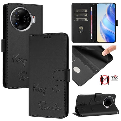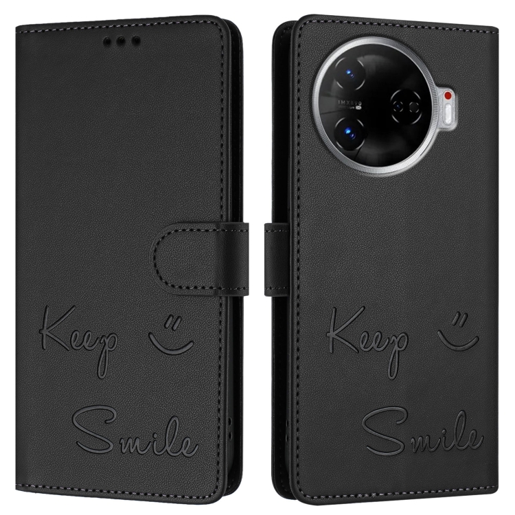 Funda de Cuero Rfid con Relieve Sonriente para Tecno Camon 30 Pro 5G (Negra)