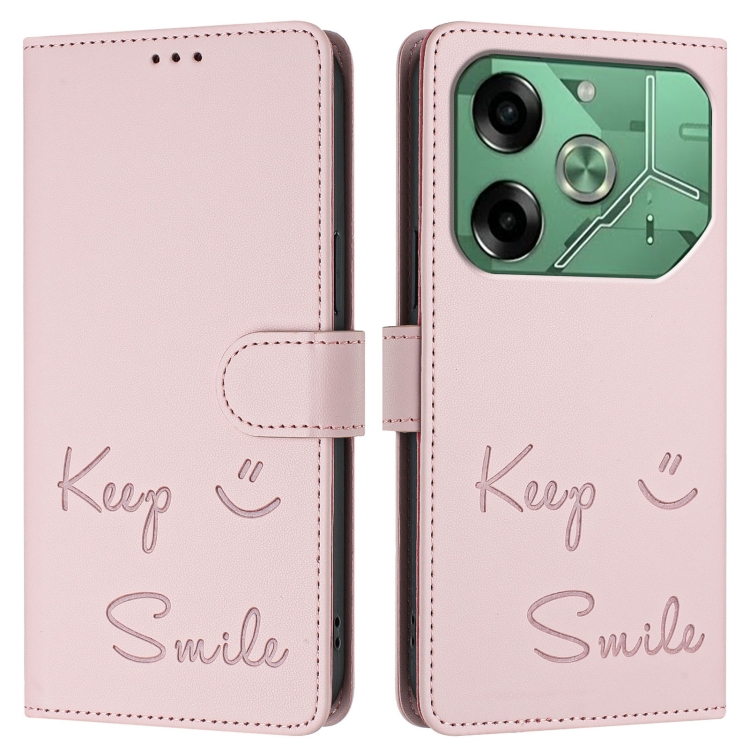Funda de Cuero Rfid con Relieve Sonriente para Tecno Pova 6 4G (Rosa)