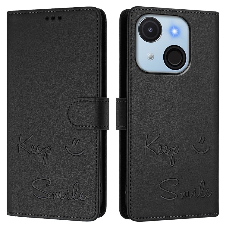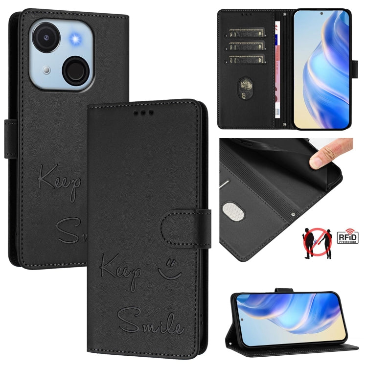 Funda de Cuero Rfid con Relieve Sonriente para Teléfono Itel A50C (Negra)