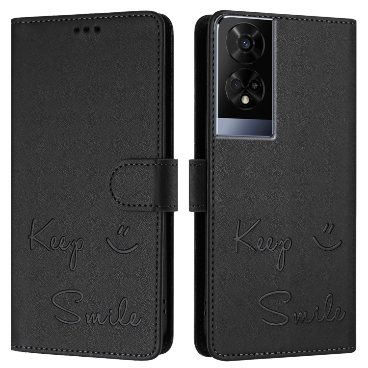 Funda de Cuero Rfid con Relieve Sonriente para TCL 50 Xe 5G (Negra)