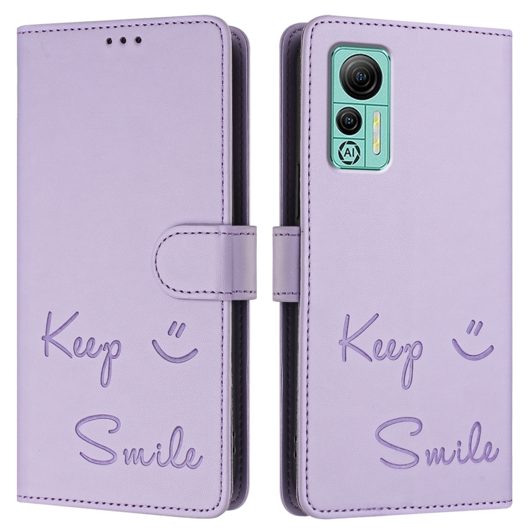 Funda de Cuero Rfid con Relieve Sonriente para Ulefone Note 14 (Morado Claro)