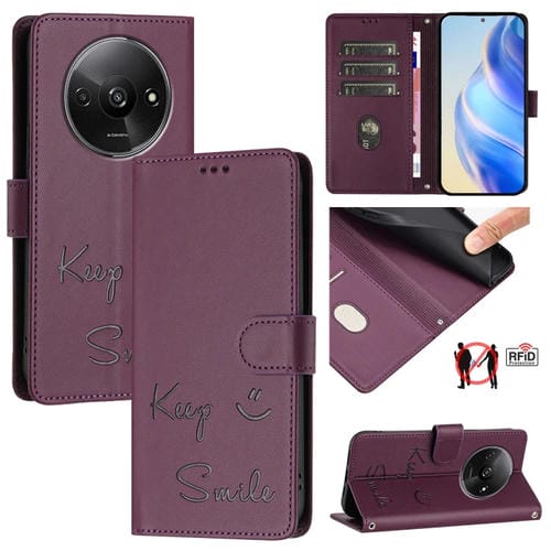 Funda de Cuero Rfid con Relieve Sonriente para Xiaomi Poco C61 (Violeta)