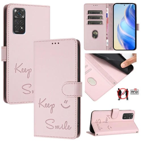 Funda de Cuero Rfid con Relieve Sonriente para Xiaomi Poco M4 Pro 5G (Rosa)