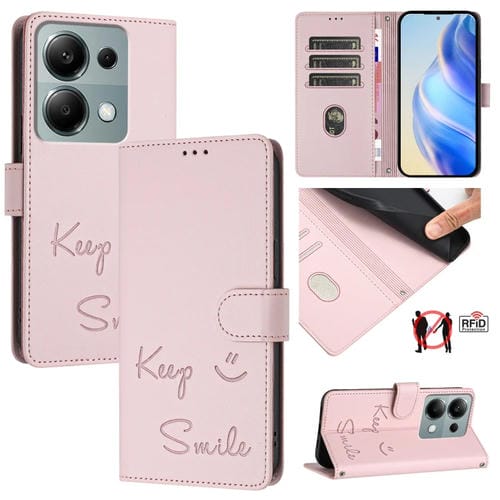 Funda de Cuero Rfid con Relieve Sonriente para Xiaomi Poco M6 Pro 4G (Rosa)