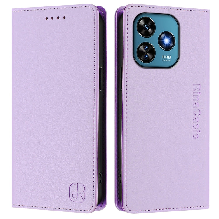 Funda de Cuero Rfid con Succión Magnética y Doble Pliegue para Oukitel C51 Rc01 (Morado Claro)