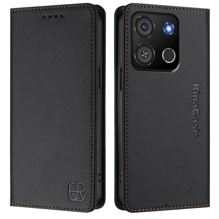 Funda de Cuero Rfid para Teléfono Itel A05S Rc01 con Succión Magnética y Doble Pliegue (Negra)