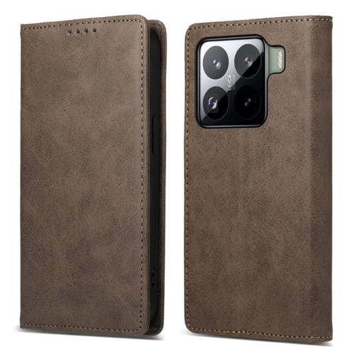 Funda De Cuero Rfid Magnética Para Xiaomi 15 Pro Business De Color Sólido (Marrón)