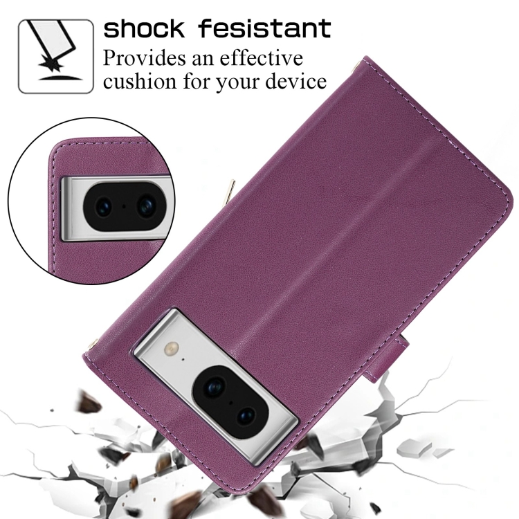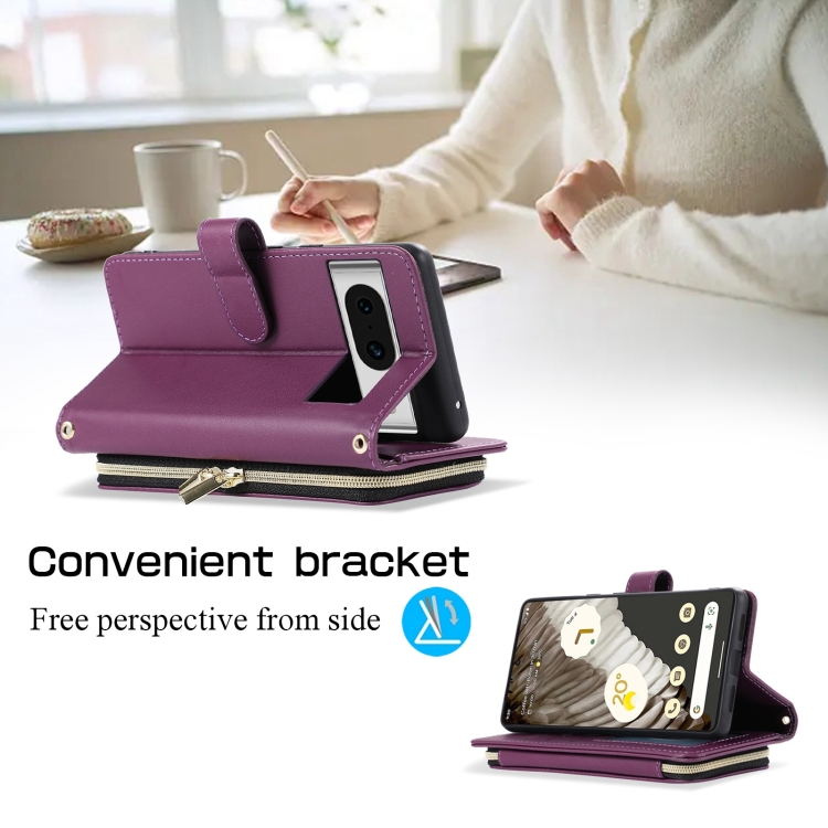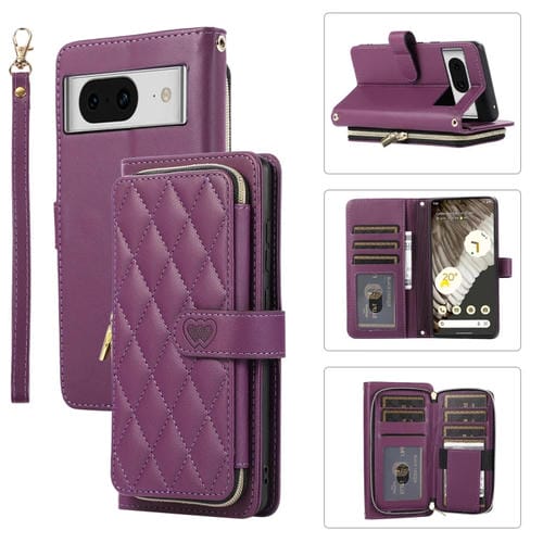 Funda de Cuero Tipo Billetera con Cremallera Completa y Diseño Rombal para Google Pixel 8 (Morado Oscuro)