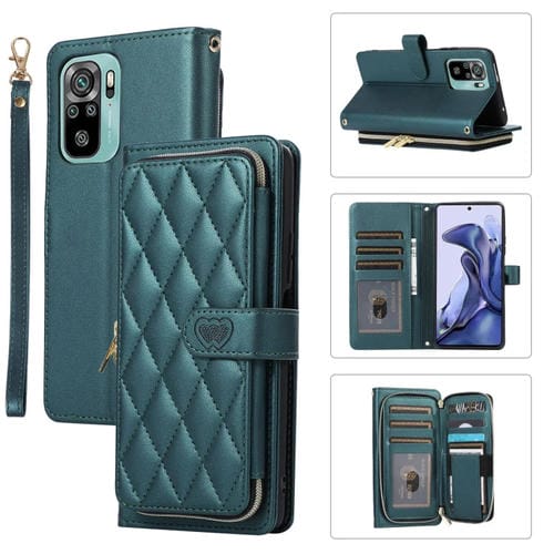 Funda de Cuero Tipo Billetera con Cremallera Completa y Diseño Rombal para Redmi Note 10/10S (Verde)