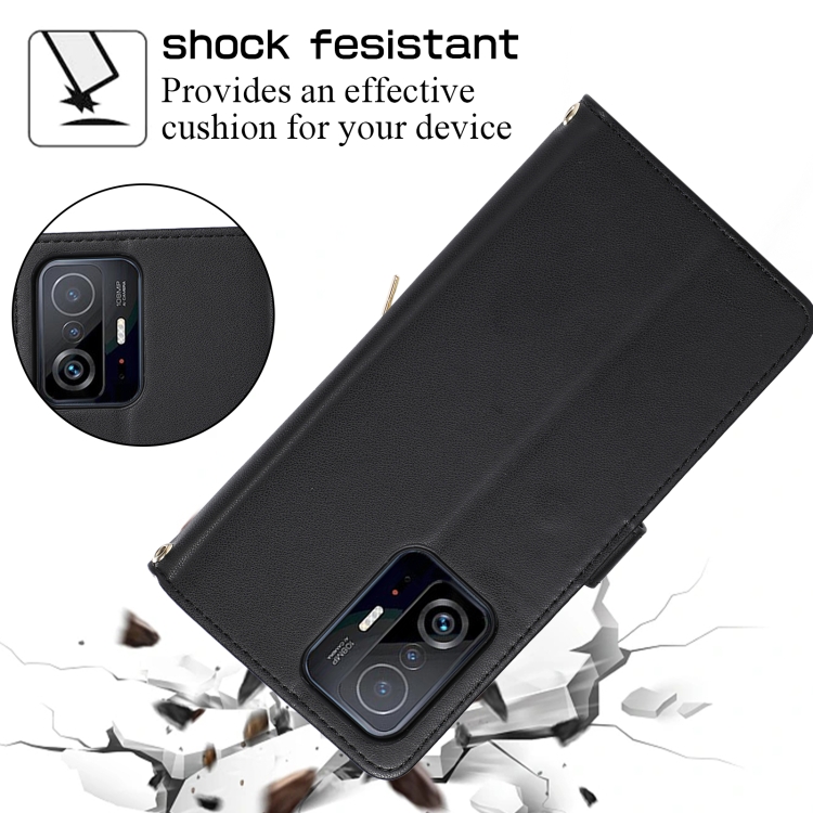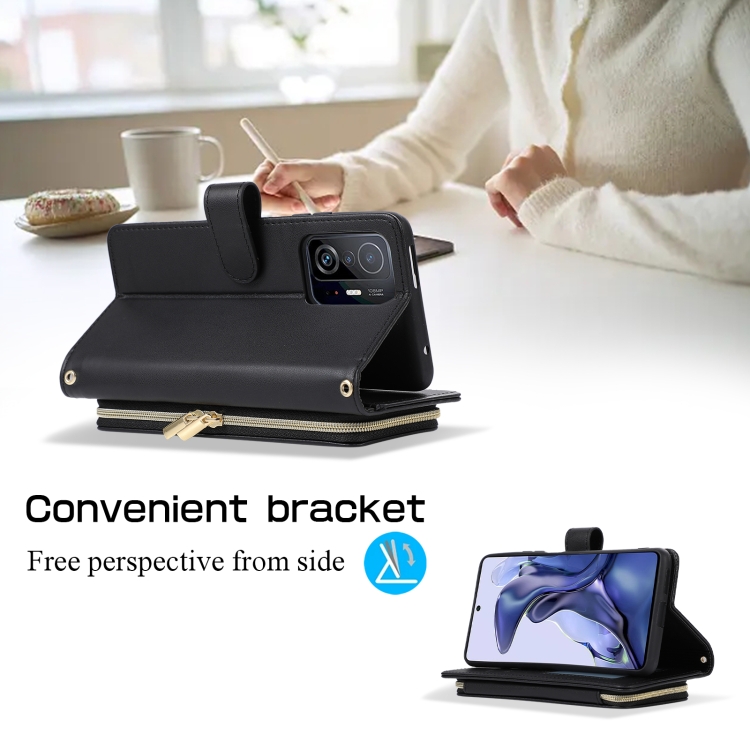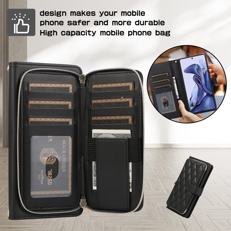 Funda de Cuero Tipo Billetera con Cremallera Completa y Diseño Rombal para Xiaomi Mi 11T/11T Pro (Negra)