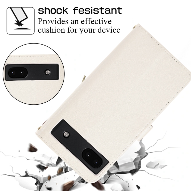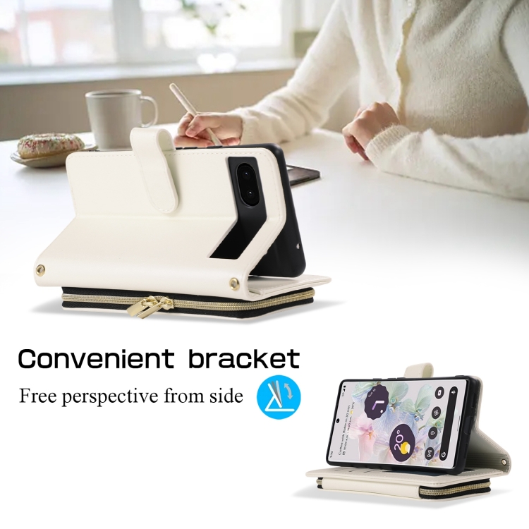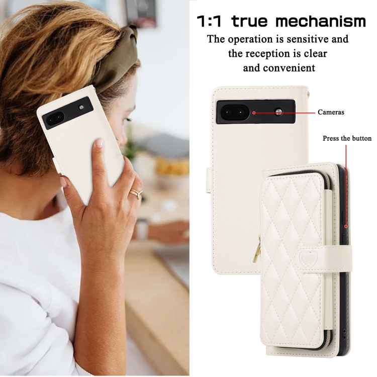Funda de Cuero Tipo Billetera con Cremallera Completa y Diseño Romboidal para Google Pixel 6A (Blanca)