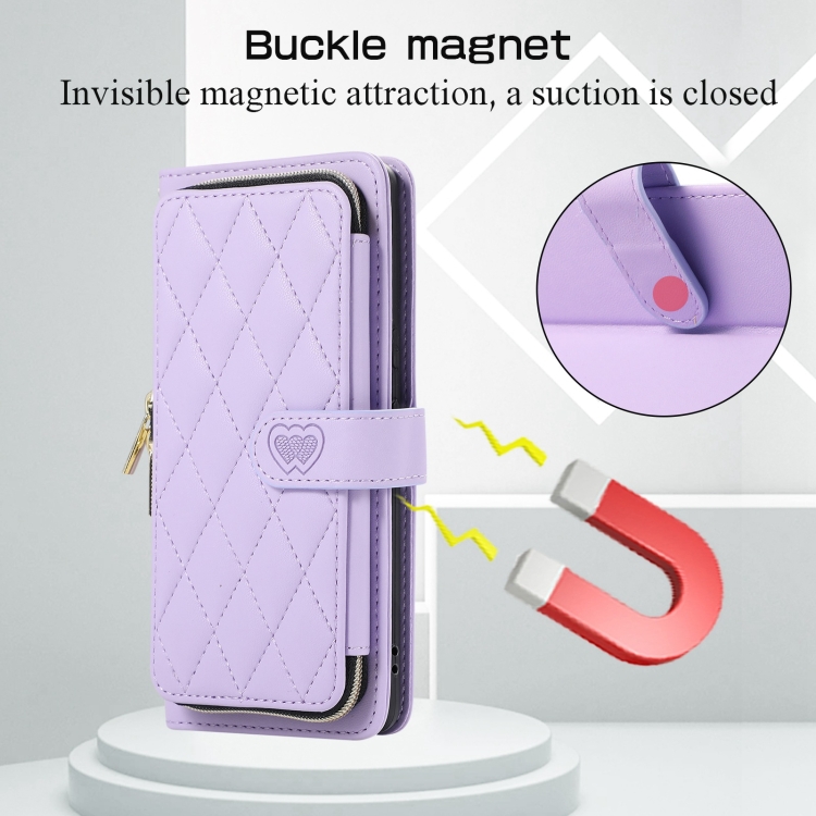 Funda Cuero Tipo Billetera con Cremallera Completa y Diseño Romboidal para Google Pixel 7 (Morado)